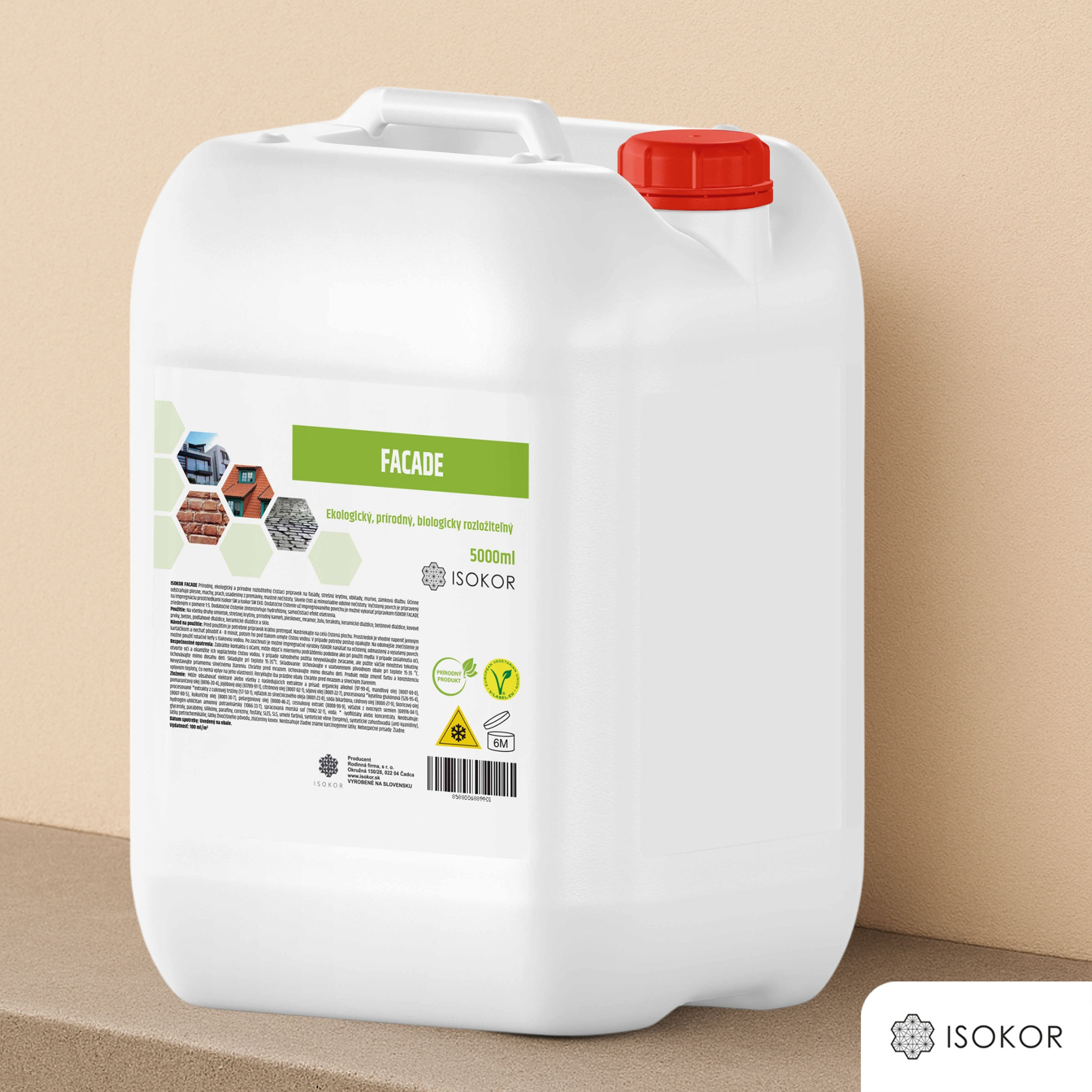 Čistič fasád Isokor Facade je prípravok na prírodnej báze, neškodný k životnému prostrediu a vhodný na všetky typy fasádnych farieb a fasád. Čistenie fasády naším prípravkom nepoškodzuje farbu ani podklad, neobsahuje žiadne nebezpečné ani agresívne látky. Fasádu vyčistí šetrne a chráni pritom aj okolité rastlinstvo. Po vyčistení odporúčame povrch vysušiť a zaimpregnovať nanoimpregnačnými prípravkami Isokor.