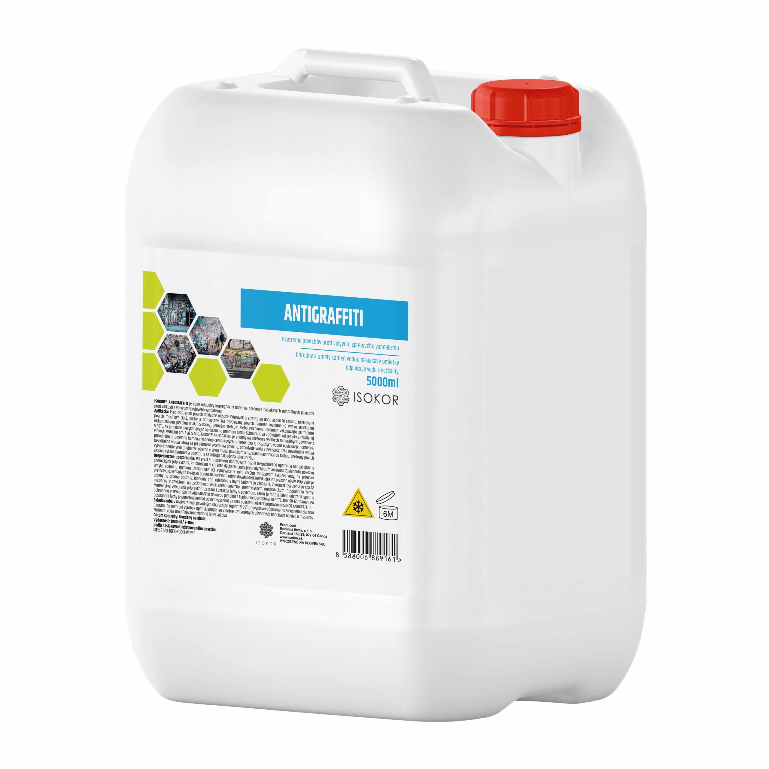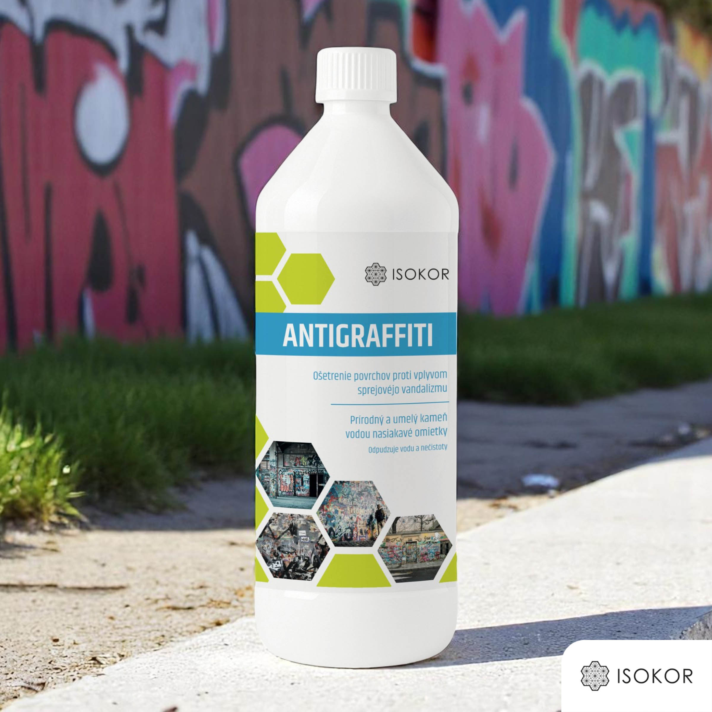 Použitím Isokor Antigraffiti® na povrchy budov, stavieb, bytov, fasád sa vytvorí ochranný povlak, ktorý zabráni splynutiu farby spreja s podkladom. V prípade výskytu graffiti (Grafít) stačí ošetrený povrch pretrieť teplou vodou, prípadne spláchnuť prúdom teplej vody. Farba zo spreja neprilne k povrchu, preto sa dá ľahko umyť. Pri povrchoch s členitou štruktúrou: tehla, točená omietka, brizolit sa dá farba odstrániť miernym tlakom teplej vody.