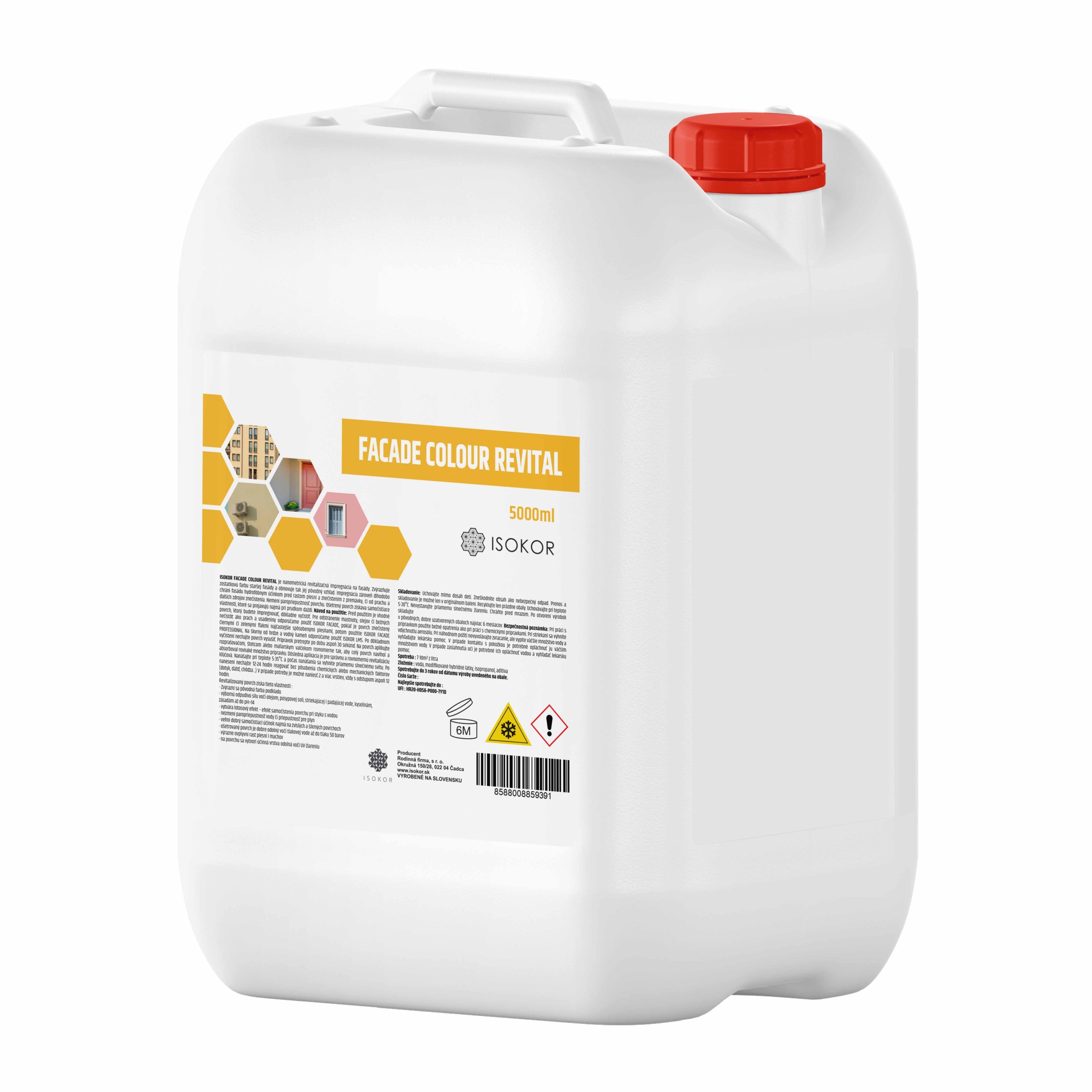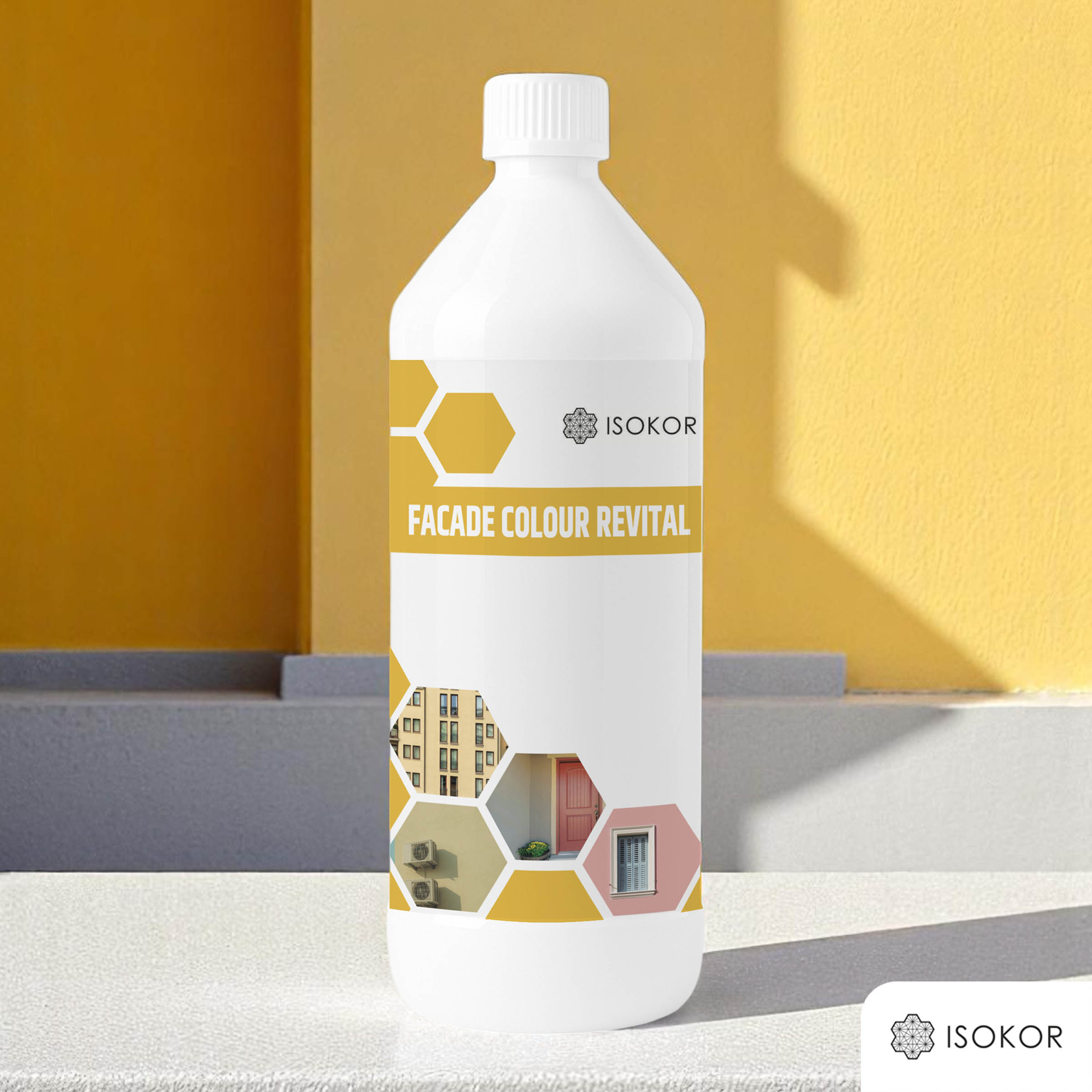 Je to nový systém Isokor, ktorý ak použijete včas, ušetrí vám až do 70% nákladov na obnovu alebo oživenie farby fasády. V prvej fáze odstránime nečistoty z fasády, vrátane čiernych a zelených škvŕn, v ďalšej nanesieme Isokor Facade Colour Revital podľa návodu na použitie. Ide o nanometrický revitalizačný systém, ktorý chráni fasádu pred vznikom plesní tým, že odpudzuje vodu, vytvára takzvaný hydrofóbny efekt a tým, že udržiava povrch suchý, podporuje odolnosť fasády voči patogénom. Prípravok na oživenie farby Isokor Facade Colour Revital zvýrazňuje a oživuje farbu fasády. Takže zo zašednutej, vyblednutej fasády, ktorá by bežne vyžadovala nový farebný náter, je možné revitalizáciou vytvoriť fasádu s oživenou farbou, chránenú nanometrickým štítom proti nadmernému znečisťovaniu. Účinná revitalizácia fasády bez potreby nanášania novej farby.