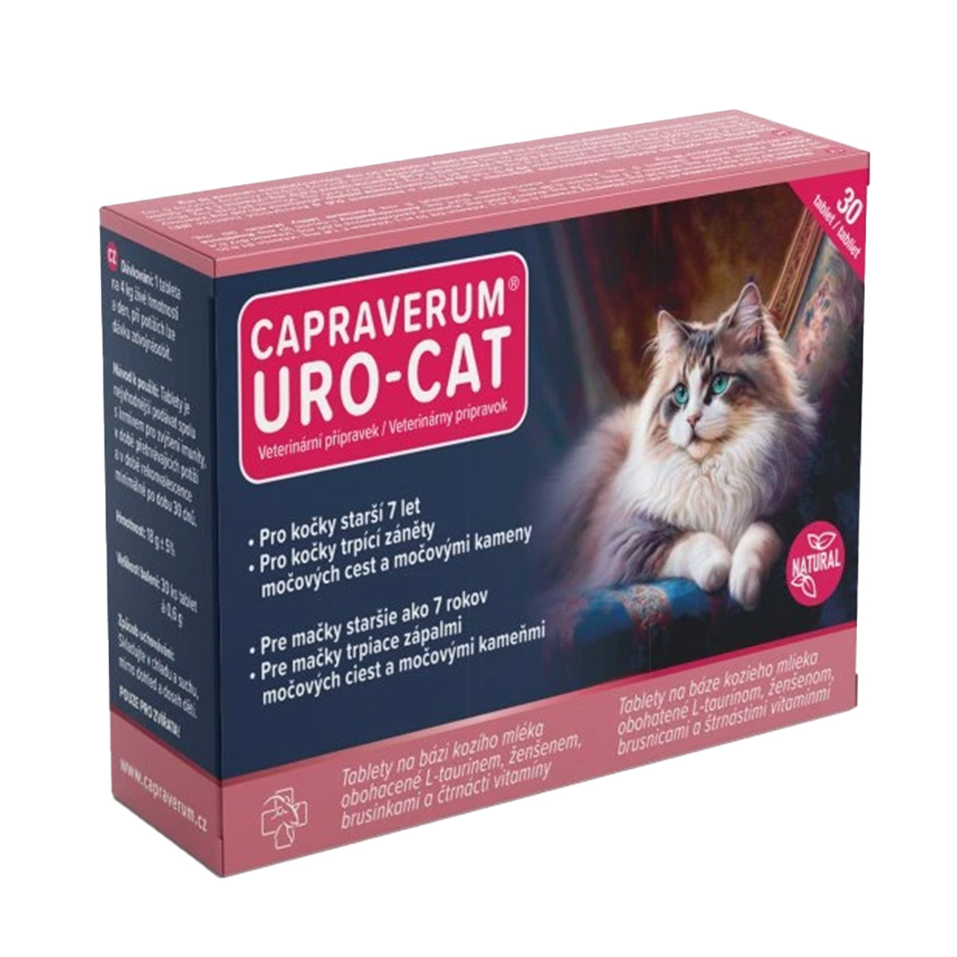 Capraverum URO-CAT je jedinečný veterinárny doplnok určený na podporu zdravia močových ciest mačiek. Kombinuje prírodné zložky s vysokým obsahom vitamínov a minerálov, ktoré sú nevyhnutné pre liečbu ochorení močových ciest u mačky. Tablety URO-CAT sa postarajú o správne fungovanie močového systému a celkové zdravie vašej mačky.